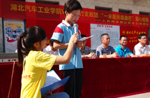 7月10日上午,湖北汽車工業(yè)學(xué)院“V益·青竹”暑期愛心支教團(tuán)的大學(xué)生們?cè)谑Y家堰鎮(zhèn)中原小學(xué)舉行愛心捐贈(zèng)活動(dòng)。湖北汽車工業(yè)學(xué)院副院長(zhǎng)閔祖?zhèn)魍、縣教育局副局長(zhǎng)周躍忠同志以及相關(guān)領(lǐng)導(dǎo)都趕來支持。