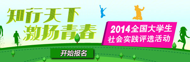 以學(xué)習(xí)宣傳習(xí)近平總書記2014年“五四講話”精神為契機(jī),以引導(dǎo)青年學(xué)生培育和踐行社會主義核心價(jià)值觀為重點(diǎn),引導(dǎo)廣大青年學(xué)生深入社會、了解國情、接受鍛煉,堅(jiān)定為實(shí)現(xiàn)中國夢努力奮斗的理想信念,人民網(wǎng)將舉辦“2014全國大學(xué)生社會實(shí)踐評選”活動。本活動以“知行天下,激揚(yáng)青春”為主題,面向全國大學(xué)生征集暑期社會實(shí)踐成果報(bào)告,通過展示和評選的過程,對內(nèi)容充實(shí)、成果突出、事跡典型的團(tuán)隊(duì)或個(gè)人進(jìn)行宣傳和表彰。