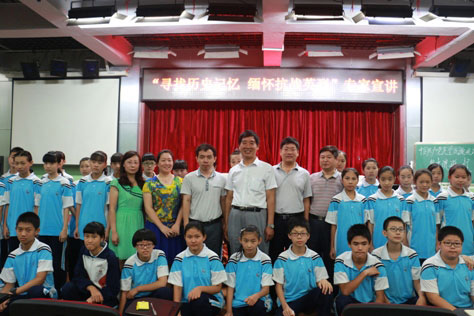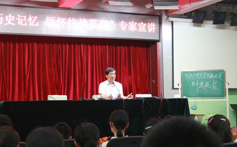 人民網(wǎng)邯鄲7月23日電(陸加杰 于紅林 李兵兵 徐于凡)7月22日-24日,由中央網(wǎng)信辦、中央黨史研究室指導(dǎo),人民網(wǎng)聯(lián)合河北、內(nèi)蒙古、遼寧、吉林、黑龍江、重慶、四川、貴州8省區(qū)市共同主辦的“尋找歷史記憶 緬懷抗戰(zhàn)英烈——紀(jì)念抗日戰(zhàn)爭(zhēng)勝利70周年系列活動(dòng)”在河北邯鄲啟動(dòng)!包h史專家進(jìn)校園”是此次系列活動(dòng)的重要組成部分,23日下午,中央黨史研究室宣傳教育局原副局長(zhǎng)薛慶超來到邯鄲市廣泰中學(xué),以“中國共產(chǎn)黨是全民族抗戰(zhàn)的中流砥柱”為題,為該校師生講述了一堂生動(dòng)的抗戰(zhàn)歷史課。