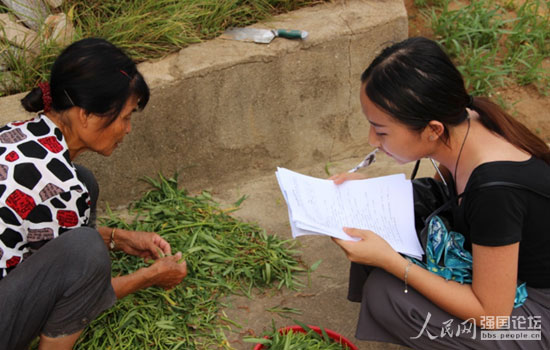 閩江學(xué)院大學(xué)生走進(jìn)田間地頭做問卷調(diào)查。