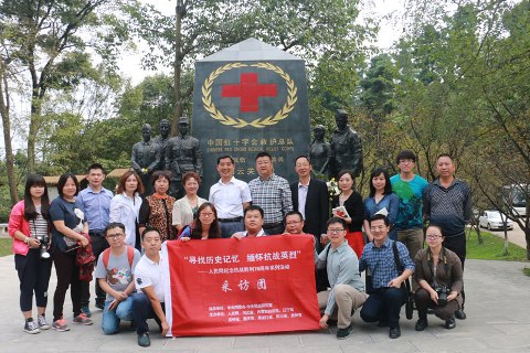采訪團在圖云關(guān)中國紅十字會救護總隊舊址紀念碑前,觀看先輩們抗戰(zhàn)的照片和資料,緬懷“救死扶傷、博愛恤兵”的抗日先烈,貴陽市政協(xié)原副主席楊永楦向采訪團講述了70年前她父親及其工作的中國紅十字會救護總隊的歷史故事。