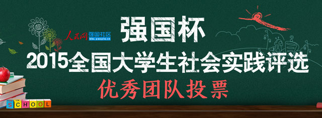 為勉勵廣大青年認真學習習近平總書記關于弘揚真善美、傳播正能量的講話精神,引導大學生積極參與社會實踐,在志愿服務過程中獲得鍛煉與成長,在共青團中央學校部、人民日報社政文部指導下,人民網(wǎng)以強國論壇為平臺舉辦“強國杯”2015全國大學生社會實踐評選活動。活動吸引了各大院校和廣大學生的熱情參與,共有500多所院校的數(shù)千個團隊報名,組委會從中選出200個團隊正式入圍并展開網(wǎng)絡投票。