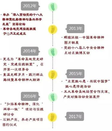 2012年12月,在嘉興、井岡山、遵義、延安、石家莊市委組織部的共同倡議和精心策劃下,五地組建成立“革命圣地黨建實(shí)踐聯(lián)盟”。2014年,聯(lián)盟更名為“革命圣地黨史研究?黨建實(shí)踐聯(lián)盟”,并在中央黨史研究室設(shè)立聯(lián)盟聯(lián)絡(luò)處。聯(lián)盟自成立以來,已先后舉辦中國革命精神圖片展、群眾路線革命圣地行等大型主題活動(dòng)。此次現(xiàn)場考察和理論實(shí)踐研討活動(dòng),五地代表分別就扎實(shí)推進(jìn)“兩學(xué)一做”學(xué)習(xí)教育及黨史研究工作開展了深入交流。