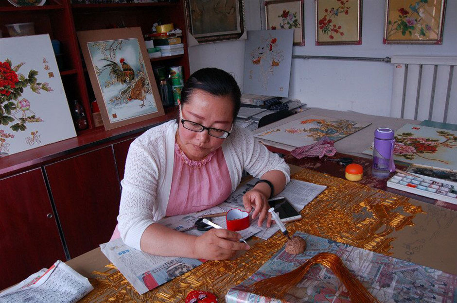 “因?yàn)橄矚g”,簡簡單單四個(gè)字,卻有著震撼人心的力量,蘭州理工大學(xué)“問藝社”的同學(xué)們走進(jìn)古香古色的工作室,見到了掐絲畫藝人高芬平。她曾擁有穩(wěn)定的教師工作,只因?qū)ζz畫的無限喜愛而辭職走上了艱難辛苦的從藝之路。如今的她是一位掐絲畫高級工藝師,正在制作靜寧特色掐絲畫——絲綢之路,巨幅畫作幾乎和她一樣高。在明媚陽光的工作室里,她享受著自己忙碌中的寧靜。