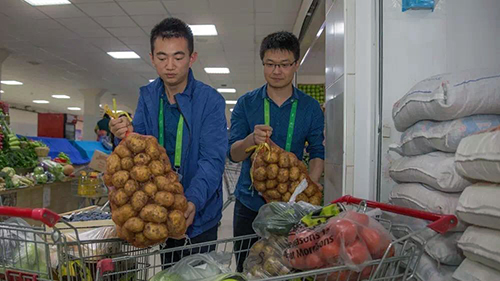 兩位“90后”大廚已經(jīng)來阿斯塔納快3個(gè)月了,每天不是在做飯就是在送飯、采購的路上。每周都要去菜市場(chǎng)采購兩三次,一是因?yàn)閿?shù)量龐大,二是保障食材的新鮮度。剛來阿斯塔納的時(shí)候,兩個(gè)人到處奔走尋找適合中餐的原材物料,幾乎跑遍了阿斯塔納大大小小的農(nóng)貿(mào)市場(chǎng)和超市,很多食材和調(diào)味品甚至要從阿拉木圖和周邊城市調(diào)配。綜合比較之下,最終選定了郊區(qū)的一家農(nóng)貿(mào)超市,因?yàn)檫@里的食材較為新鮮、價(jià)錢也適中,只是路途遙,每次往返開車都要將近2個(gè)小時(shí)。