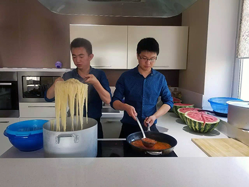 于是,趕緊從中國館運(yùn)營總監(jiān)劉芳那里了解到關(guān)于大廚的一些信息。劉芳總監(jiān)介紹到,青島世園集團(tuán)從中標(biāo)本屆阿斯塔納世博會(huì)運(yùn)營商開始,就在琢磨如何做好志愿者的保障?紤]到志愿者國外生活經(jīng)驗(yàn)不足,加上中外飲食差異較大,便決心提供良好的餐飲保障,讓志愿者展現(xiàn)最良好的精神狀態(tài)和工作狀態(tài)。隨后,從青島世園集團(tuán)旗下的五星級(jí)酒店——世園寒軒酒店精心挑選兩名廚藝精湛的廚師駐守在阿斯塔納,專門保障志愿者的飲食。來哈之前就對(duì)兩位廚師進(jìn)行過多次業(yè)務(wù)培訓(xùn),來哈之后根據(jù)當(dāng)?shù)貙?shí)際情況又制定采購標(biāo)準(zhǔn)等一系列管理制度,并積極關(guān)注志愿者需求,不斷改進(jìn)飲食,確保切實(shí)為志愿者們提供最可口、最可心的飯菜,志愿者們對(duì)兩位大廚的廚藝可是贊不絕口。