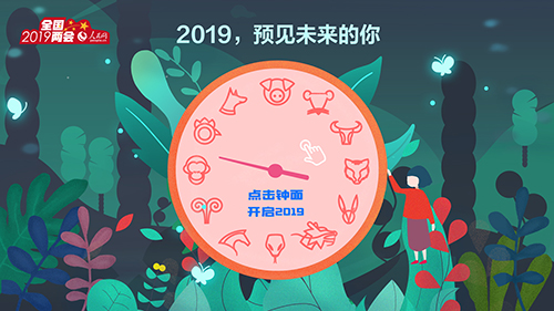 打開人民網(wǎng)兩會專題,便可看見“萬紅叢中一點綠”,這一抹“綠”便是特別策劃“2019兩會,預(yù)見未來”。該策劃的封面設(shè)計不僅呼應(yīng)主題,且頗具神秘感,時間元素貫穿全部場景。