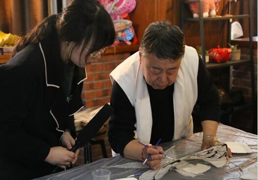 肖靜在活動(dòng)現(xiàn)場(chǎng)與非遺愛(ài)好者共同制作毛猴
