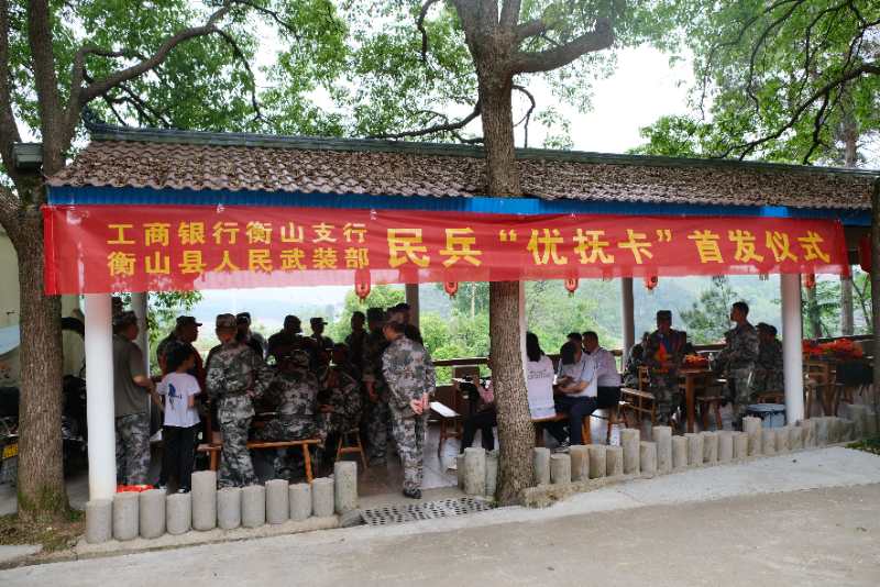 前不久,衡山縣人武部與中國工商銀行衡山支行舉行民兵“優(yōu)撫卡”首發(fā)儀式,給正在參加防汛演練的30余名基干民兵送去了一份特別的小禮物——“隨軍行擁軍優(yōu)撫卡”。 這張卡,是今年年初該縣人武部主動與銀行進(jìn)行溝通協(xié)調(diào)后,專門設(shè)計制作的一張融身份識別功能與金融服務(wù)功能于一體的民兵優(yōu)撫卡?ǖ恼姹尘皥D案是一位身著軍裝的民兵照片,并印有“隨軍行擁軍優(yōu)撫卡”字樣。