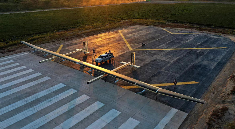 “民航飛機(jī)巡航高度一般在海拔9千米左右。海拔20千米到100千米的區(qū)域,空氣稀薄,基本沒(méi)有風(fēng),也沒(méi)有云層遮擋,被稱為臨近空間,飛行器少。大型太陽(yáng)能無(wú)人機(jī)雖然機(jī)翼面積大抗風(fēng)性差,但卻特別適合在這個(gè)區(qū)域飛行。”黃大慶說(shuō)。