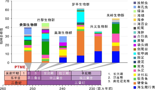 三疊紀(jì)生物群多樣性和物種組成對比 。宋海軍/供圖