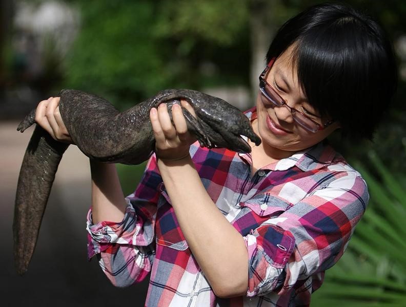 車靜與中國(guó)大鯢。(受訪者供圖)